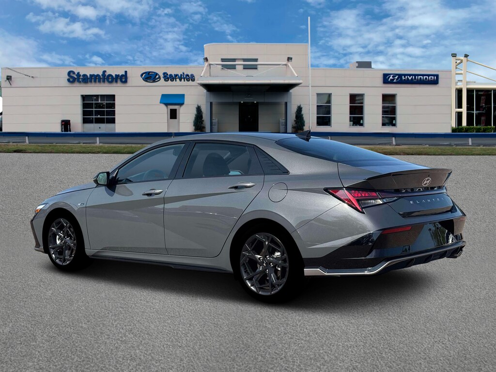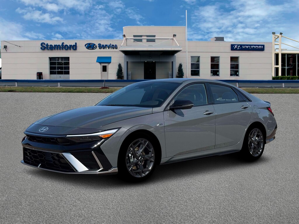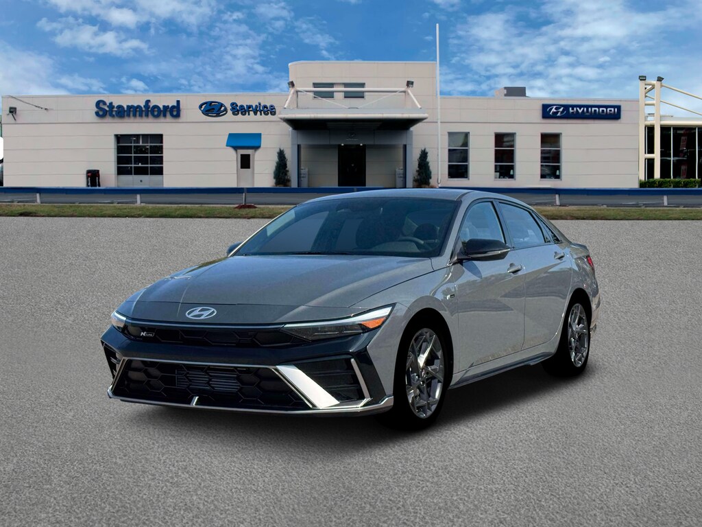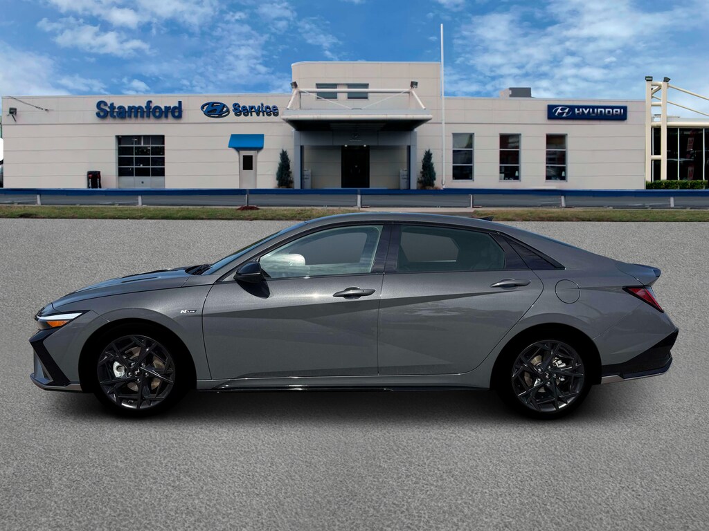 Ecotronic Gray 2026 Hyundai Elantra N Line FWD 7-Speed Dual Clutch DCT I4 18" x 7.5J Alloy Wheels, 4-Wheel Disc Brakes, 8 Speakers, ABS brakes, Air Conditioning, Alloy wheels, AM/FM radio: SiriusXM, Apple CarPlay & Android Auto, Auto High-beam Headlights, Automatic temperature control, Brake assist, Bumpers: body-color, Combination Cloth and Leatherette Seating Surfaces, Delay-off headlights, Driver door bin, Driver vanity mirror, Dual front impact airbags, Dual front side impact airbags, Electronic Stability Control, Emergency communication system: None, Exterior Parking Camera Rear, Four wheel independent suspension, Front anti-roll bar, Front Bucket Seats, Front Center Armrest, Front dual zone A/C, Front reading lights, Fully automatic headlights, Heated door mirrors, Heated front seats, Heated Front Sport Bucket Seats, Illuminated entry, Leather Shift Knob, Leather steering wheel, Low tire pressure warning, Navigation System, Occupant sensing airbag, Option Group 01, Outside temperature display, Overhead airbag, Overhead console, Panic alarm, Passenger door bin, Passenger vanity mirror, Power door mirrors, Power driver seat, Power moonroof, Power steering, Power windows, Radio: AM/FM/HD/SiriusXM Display Audio, Rear anti-roll bar, Rear seat center armrest, Rear side impact airbag, Rear window defroster, Remote keyless entry, Security system, Speed control, Speed-sensing steering, Split folding rear seat, Spoiler, Sport steering wheel, Steering wheel mounted audio controls, Tachometer, Telescoping steering wheel, Tilt steering wheel, Traction control, Trip computer, Turn signal indicator mirrors, Variably intermittent wipers.