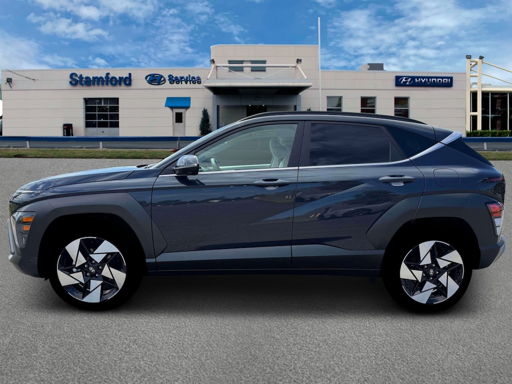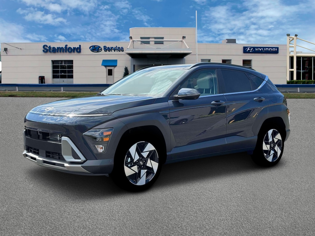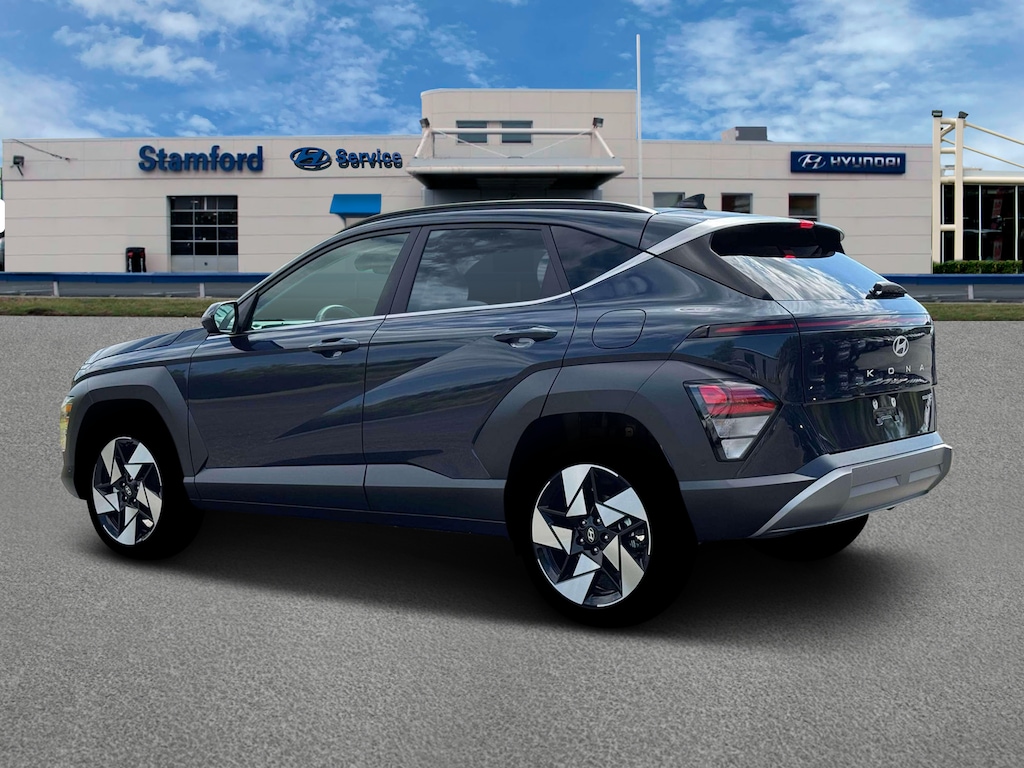 Denim Blue Pearl 2026 Hyundai Kona Limited AWD 8-Speed Automatic I4 4-Wheel Disc Brakes, 8 Speakers, ABS brakes, Air Conditioning, All-Weather Fitted Liners, Alloy wheels, AM/FM radio: SiriusXM, Apple CarPlay & Android Auto, Auto High-beam Headlights, Auto-dimming Rear-View mirror, Automatic temperature control, Brake assist, Bumpers: body-color, Cargo Net, Cargo Tray, Carpeted Floor Mats, Delay-off headlights, Driver door bin, Driver vanity mirror, Dual front impact airbags, Dual front side impact airbags, Electronic Stability Control, Emergency communication system: None, First Aid Kit, Four wheel independent suspension, Front anti-roll bar, Front Bucket Seats, Front Center Armrest, Front dual zone A/C, Front reading lights, Fully automatic headlights, H-Tex Seat Trim, Heated and Ventilated Front Bucket Seats, Heated door mirrors, Heated front seats, Heated steering wheel, Illuminated entry, Leather steering wheel, Low tire pressure warning, Navigation System, Occupant sensing airbag, Option Group 01, Outside temperature display, Overhead airbag, Panic alarm, Passenger door bin, Passenger vanity mirror, Power door mirrors, Power driver seat, Power Liftgate, Power moonroof, Power steering, Power windows, Radio: AM/FM/SiriusXM/HD Audio System, Rear anti-roll bar, Rear seat center armrest, Rear window defroster, Rear window wiper, Remote keyless entry, Security system, Speed control, Speed-sensing steering, Split folding rear seat, Spoiler, Steering wheel mounted audio controls, Tachometer, Telescoping steering wheel, Tilt steering wheel, Traction control, Trip computer, Turn signal indicator mirrors, Variably intermittent wipers, Ventilated front seats, Wheels: 19" x 7.5J Silver/Black Alloy.