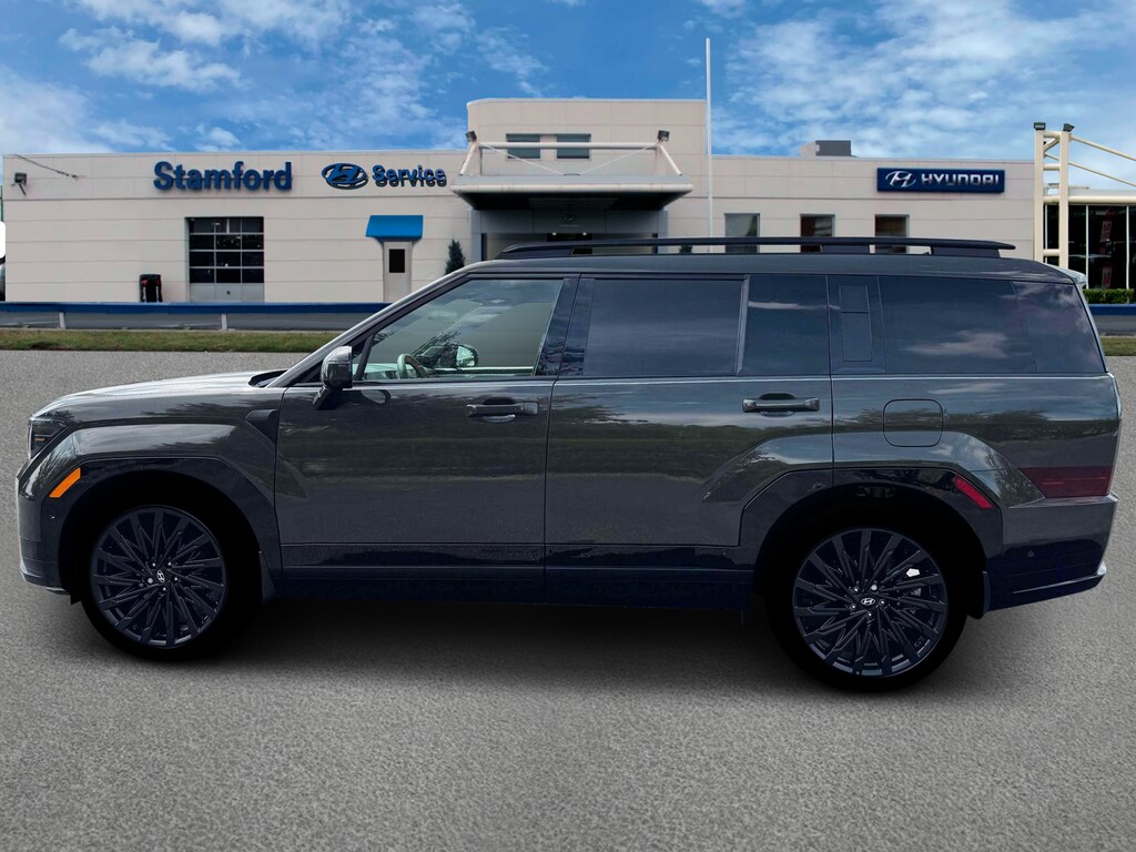 Rockwood Green 2026 Hyundai Santa Fe Calligraphy AWD 8-Speed Automatic with SHIFTRONIC 2.5L I4 12 Speakers, 3rd row seats: bench, 4-Wheel Disc Brakes, ABS brakes, Air Conditioning, Alloy wheels, AM/FM radio: SiriusXM, Apple CarPlay & Android Auto, Auto High-beam Headlights, Auto-dimming Rear-View mirror, Automatic temperature control, Brake assist, Bumpers: body-color, Cargo Cover/Screen, Cargo Net, Carpeted Floor Mats, Delay-off headlights, Driver door bin, Driver vanity mirror, Dual front impact airbags, Dual front side impact airbags, Electronic Stability Control, Emergency communication system, Exterior Parking Camera Rear, First Aid Kit, Four wheel independent suspension, Front anti-roll bar, Front Bucket Seats, Front Center Armrest, Front dual zone A/C, Front reading lights, Fully automatic headlights, Garage door transmitter: HomeLink, Heads-Up Display, Heated & Ventilated Front Bucket Seats, Heated door mirrors, Heated front seats, Heated rear seats, Heated steering wheel, Illuminated entry, Knee airbag, Leather steering wheel, Low tire pressure warning, Memory seat, Mudguards, Navigation System, Occupant sensing airbag, Option Group 01, Outside temperature display, Overhead airbag, Overhead console, Panic alarm, Passenger door bin, Passenger vanity mirror, Power door mirrors, Power driver seat, Power Liftgate, Power moonroof, Power passenger seat, Power steering, Power windows, Quilted Premium Nappa Leather Seat Trim, Radio: AM/FM/HD Bose Premium Audio System, Rain sensing wipers, Rear anti-roll bar, Rear side impact airbag, Rear window defroster, Rear window wiper, Remote keyless entry, Roadside Assistance Kit, Security system, Speed control, Speed-sensing steering, Split folding rear seat, Spoiler, Steering wheel mounted audio controls, Tachometer, Telescoping steering wheel, Tilt steering wheel, Traction control, Trip computer, Turn signal indicator mirrors, Variably intermittent wipers, Ventilated front seats, Wheels: 21" x 8.5J Unique Dark Finish Alloy.