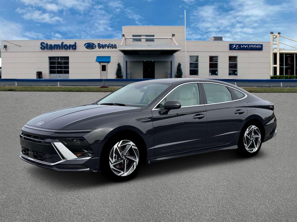 Carbon Blue 2026 Hyundai Sonata SEL AWD 8-Speed Automatic I4 18" x 7.5J Aluminum Alloy Wheels, 4-Wheel Disc Brakes, 6 Speakers, ABS brakes, Air Conditioning, Alloy wheels, AM/FM radio: SiriusXM, Apple CarPlay & Android Auto, Auto High-beam Headlights, Automatic temperature control, Brake assist, Bumpers: body-color, Cargo Tray, Carpeted Floor Mats, Delay-off headlights, Driver door bin, Driver vanity mirror, Dual front impact airbags, Dual front side impact airbags, Electronic Stability Control, Emergency communication system: Bluelink+, Exterior Parking Camera Rear, First Aid Kit, Four wheel independent suspension, Front anti-roll bar, Front Bucket Seats, Front Center Armrest, Front dual zone A/C, Front reading lights, Fully automatic headlights, Heated door mirrors, Heated Front Bucket Seats, Heated front seats, Illuminated entry, Knee airbag, Leather steering wheel, Low tire pressure warning, Occupant sensing airbag, Option Group 01, Outside temperature display, Overhead airbag, Overhead console, Panic alarm, Passenger door bin, Passenger vanity mirror, Power door mirrors, Power driver seat, Power steering, Power windows, Premium Cloth Seating Surfaces, Radio data system, Radio: AM/FM/HD/MP3/SiriusXM, Rear anti-roll bar, Rear seat center armrest, Rear side impact airbag, Rear window defroster, Remote keyless entry, Security system, Speed control, Speed-sensing steering, Speed-Sensitive Wipers, Split folding rear seat, Steering wheel mounted audio controls, Tachometer, Telescoping steering wheel, Tilt steering wheel, Traction control, Trip computer, Variably intermittent wipers.