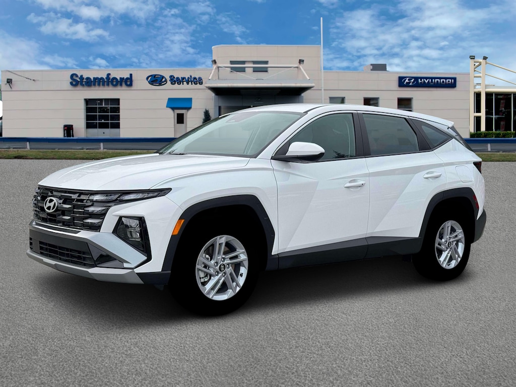 White Pearl 2026 Hyundai Tucson SE AWD 8-Speed Automatic with SHIFTRONIC 2.5L I4 DGI DOHC 16V LEV3-SULEV30 187hp 17" x 7.0J Alloy Wheels, 4-Wheel Disc Brakes, 6 Speakers, ABS brakes, Air Conditioning, Alloy wheels, AM/FM radio: SiriusXM, Apple CarPlay & Android Auto, Auto High-beam Headlights, Brake assist, Bumpers: body-color, Cargo Blocks, Cargo Cover, Cargo Net, Cargo Tray, Carpeted Floor Mats, Delay-off headlights, Driver door bin, Driver vanity mirror, Dual front impact airbags, Dual front side impact airbags, Electronic Stability Control, Emergency communication system: Bluelink+, First Aid Kit, Four wheel independent suspension, Front anti-roll bar, Front Bucket Seats, Front Center Armrest, Front reading lights, Fully automatic headlights, Illuminated Door Sills, Illuminated entry, Low tire pressure warning, Occupant sensing airbag, Option Group 01, Outside temperature display, Overhead airbag, Overhead console, Panic alarm, Passenger door bin, Passenger vanity mirror, Power door mirrors, Power steering, Power windows, Radio data system, Radio: AM/FM/HD Audio System, Rear anti-roll bar, Rear reading lights, Rear seat center armrest, Rear side impact airbag, Rear window defroster, Rear window wiper, Remote keyless entry, Security system, Speed control, Split folding rear seat, Spoiler, Stain & Odor Resistant Cloth Seat Trim, Steering wheel mounted audio controls, Tachometer, Telescoping steering wheel, Tilt steering wheel, Traction control, Trip computer, Variably intermittent wipers.
