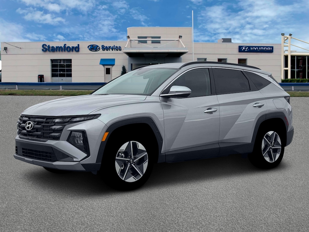 Shimmering Silver 2026 Hyundai Tucson SEL AWD 8-Speed Automatic with SHIFTRONIC 2.5L I4 DGI DOHC 16V LEV3-SULEV30 187hp 18" x 7.5J Alloy Wheels, 4-Wheel Disc Brakes, 6 Speakers, ABS brakes, Air Conditioning, Alloy wheels, AM/FM radio: SiriusXM, Apple CarPlay & Android Auto, Auto High-beam Headlights, Auto-dimming Rear-View mirror, Automatic temperature control, Brake assist, Bumpers: body-color, Cargo Blocks, Cargo Cover, Cargo Net, Cargo Tray, Carpeted Floor Mats, Delay-off headlights, Driver door bin, Driver vanity mirror, Dual front impact airbags, Dual front side impact airbags, Electronic Stability Control, Emergency communication system: Bluelink+, First Aid Kit, Four wheel independent suspension, Front anti-roll bar, Front Bucket Seats, Front Center Armrest, Front dual zone A/C, Front reading lights, Fully automatic headlights, H-Tex Leatherette Seat Trim, Heated door mirrors, Heated Front Bucket Seats, Heated front seats, Illuminated entry, Leather Shift Knob, Leather steering wheel, Low tire pressure warning, Navigation System, Occupant sensing airbag, Option Group 01, Outside temperature display, Overhead airbag, Overhead console, Panic alarm, Passenger door bin, Passenger vanity mirror, Power door mirrors, Power driver seat, Power Liftgate, Power moonroof, Power steering, Power windows, Radio data system, Radio: AM/FM/HD Audio System, Rear anti-roll bar, Rear reading lights, Rear seat center armrest, Rear side impact airbag, Rear window defroster, Rear window wiper, Remote keyless entry, Roadside Assistance Kit, Roof Rack Cross Rails, Security system, Speed control, Split folding rear seat, Spoiler, Steering wheel mounted audio controls, Tachometer, Telescoping steering wheel, Tilt steering wheel, Traction control, Trip computer, Turn signal indicator mirrors, Variably intermittent wipers.